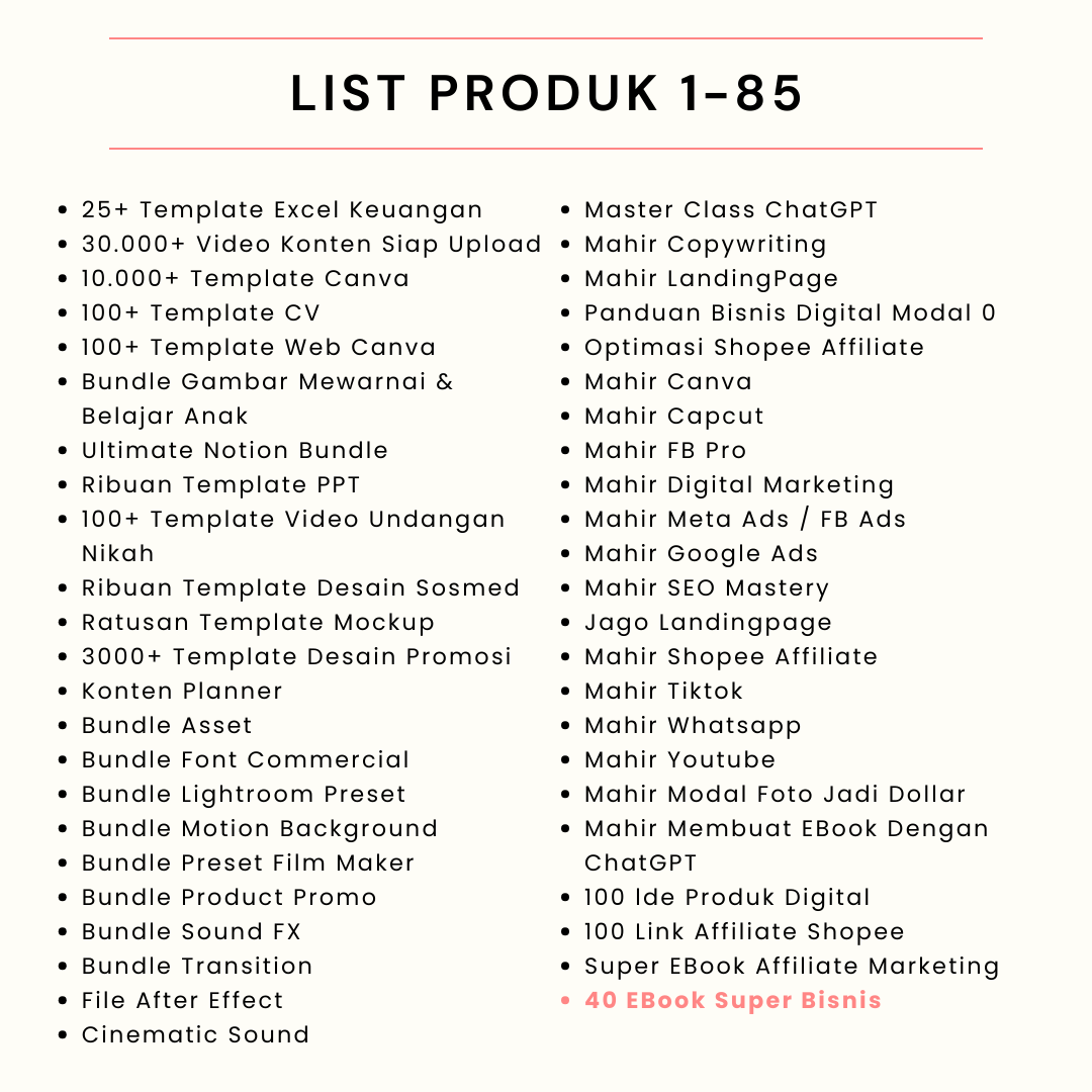 Tahun 2025 adalah waktu yang tepat untuk memulai. Saat banyak orang masih mencari cara membangun produk, kamu sudah lebih dulu memiliki koleksi siap jual sekaligus bekal ilmu yang terus berkembang.